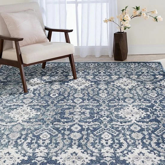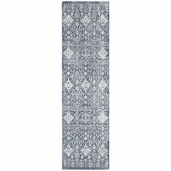 Create an enticing new look with this Loomaknoti Antinleigh Dark Blue and Grey Area Rug.