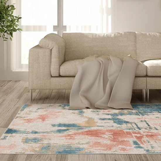 Create an enticing new look with this Loomaknoti Breenzie Ivory and Blue Area Rug.