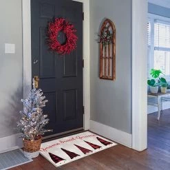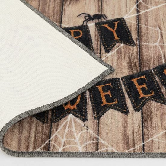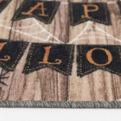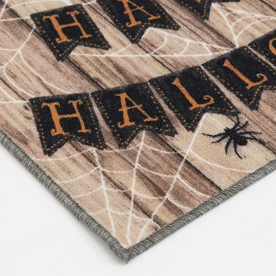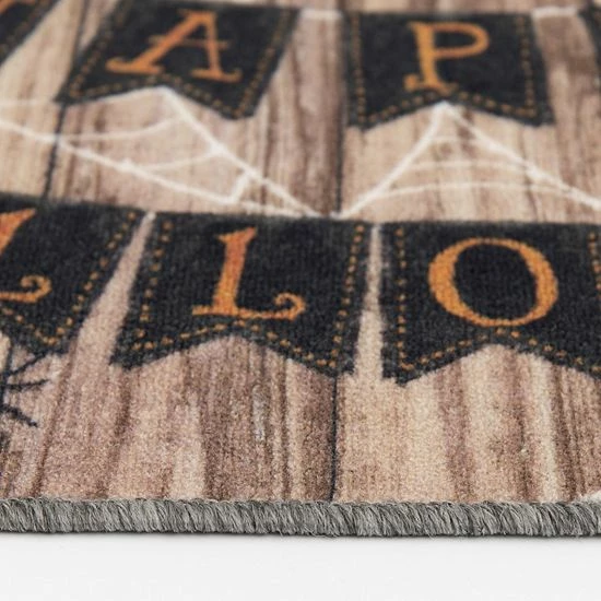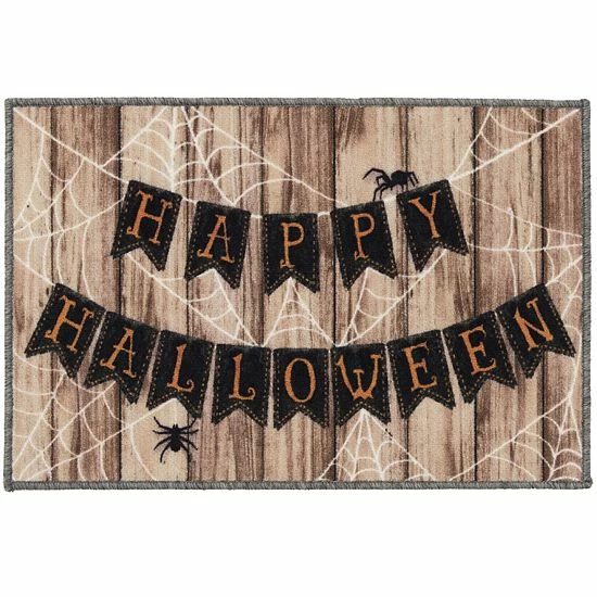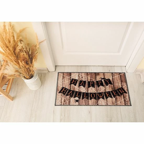 Greet your guests in a fun fashion with this Loomaknoti Home Happy Halloween Banner 20” x 30” Mat.