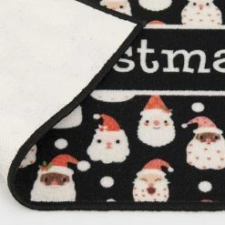 Greet your guests in a fun fashion with this Loomaknoti Home Merry Santa Faces 20” x 30” Mat.