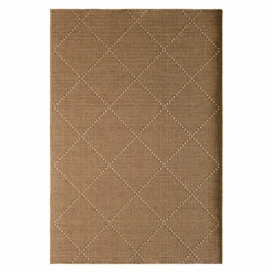 Go in a new design direction with this Loomaknoti Santorini Crossways Lattice indoor and outdoor rug. In earth/natural.