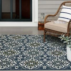 Complete your room makeover with this Loomaknoti Torfled Blue and Orange Indoor Outdoor area rug.