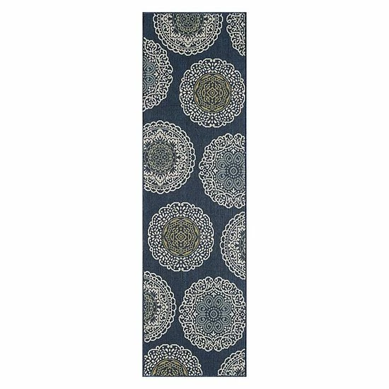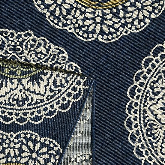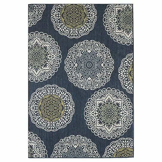 Complete your room makeover with this Loomaknoti Torfled Dark Blue and Light Green Indoor Outdoor area rug.